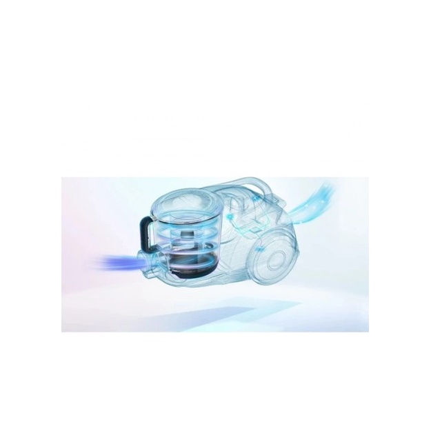 Он оснащен контейнером объемом 2.4 литра для сбора пыли, что позволяет долго использовать устройство без частой очистки. Длина сетевого шнура — 7 метров, а радиус действия составляет 10 метров, что обеспечивает свободу передвижения по дому. Регулятор мощности удобно расположен на корпусе, а наличие системы автосматывания шнура упрощает процесс уборки.