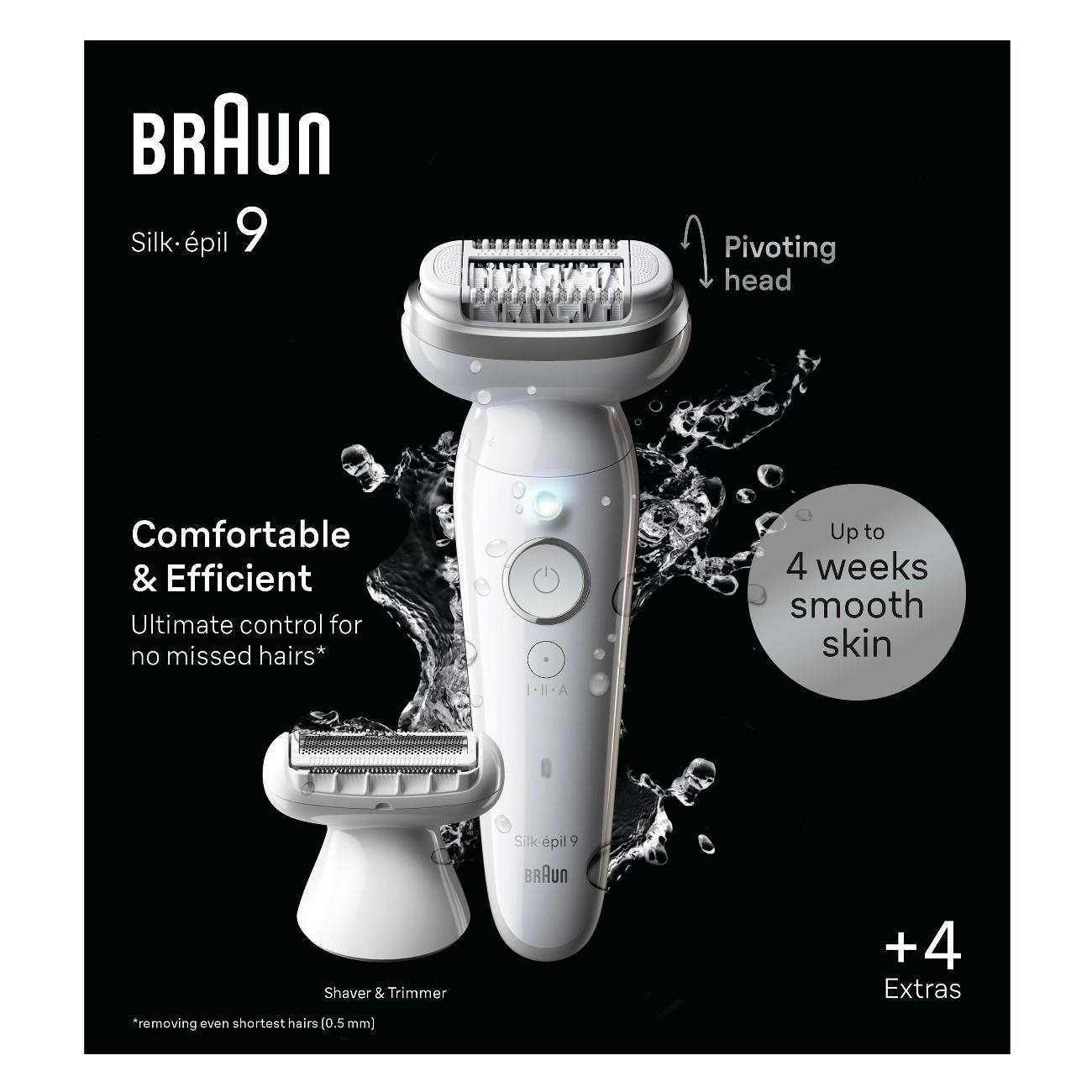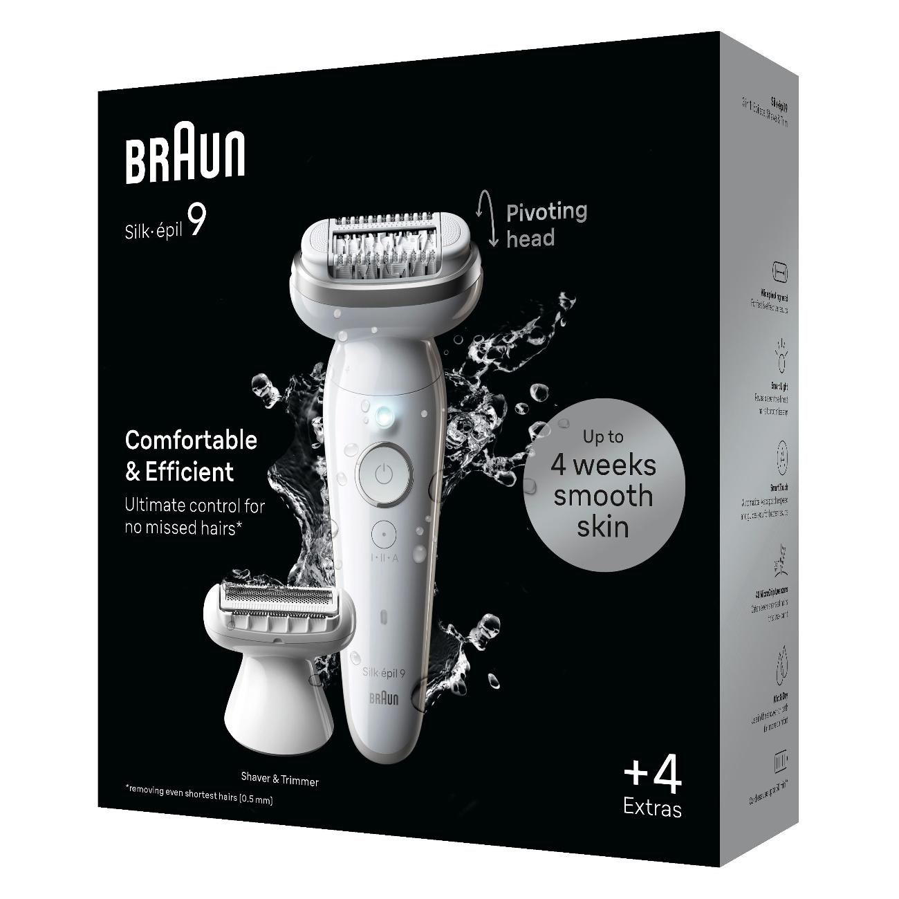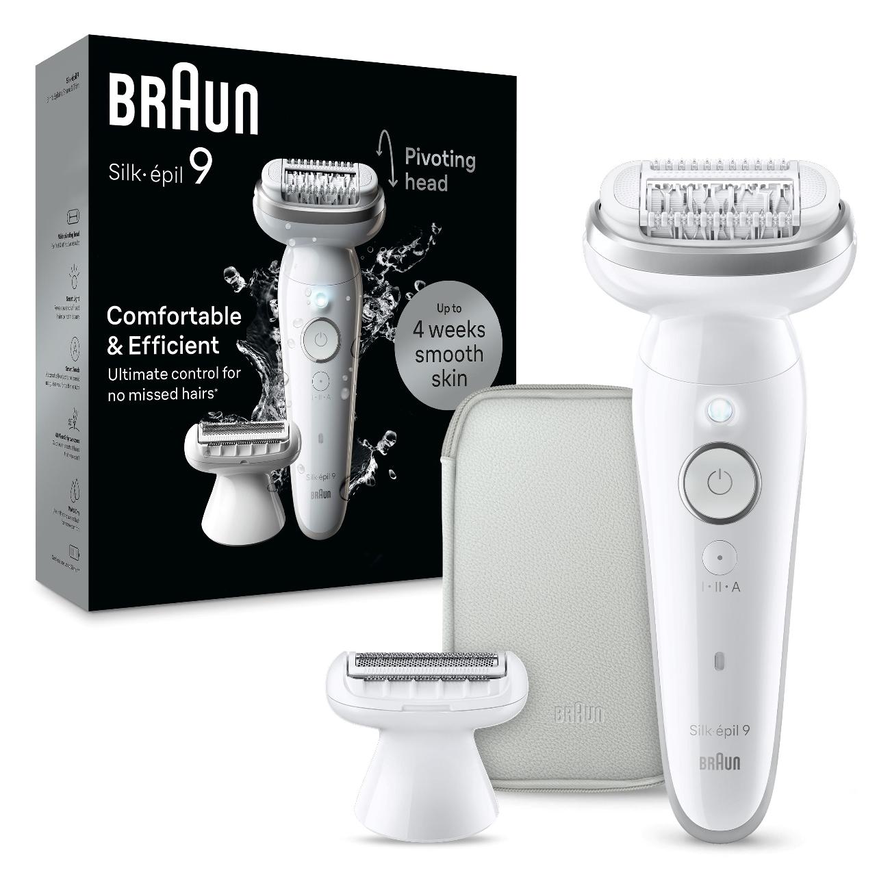 Эпилятор Braun S9 SES9-041 работает от аккумулятора до 50 минут. Прибор убирает волосы с корнем, обеспечивая гладкость до четырех недель.