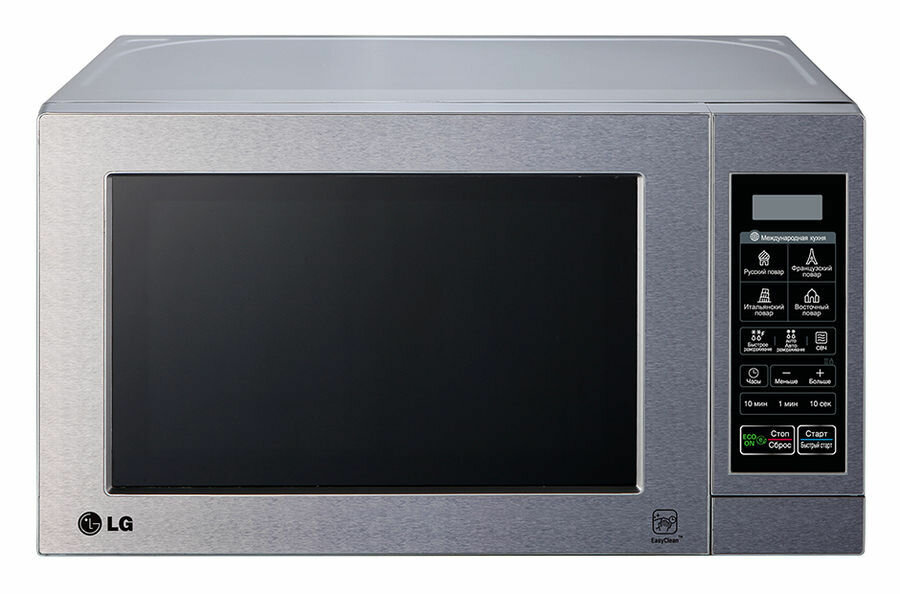 Подсветка камеры, доступное и понятное меню с сенсорными переключателями, удобный выбор продолжительности режимов – все это включает в себя микроволновая печь LG MS2044V.