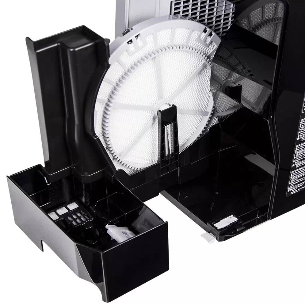 Устройство оснащено электронным управлением и имеет 4 режима работы, что позволяет настроить интенсивность испарения в зависимости от потребностей пользователя. Также имеется функция регулировки направления воздушного потока, что позволяет равномерно распределить очищенный воздух по помещению.