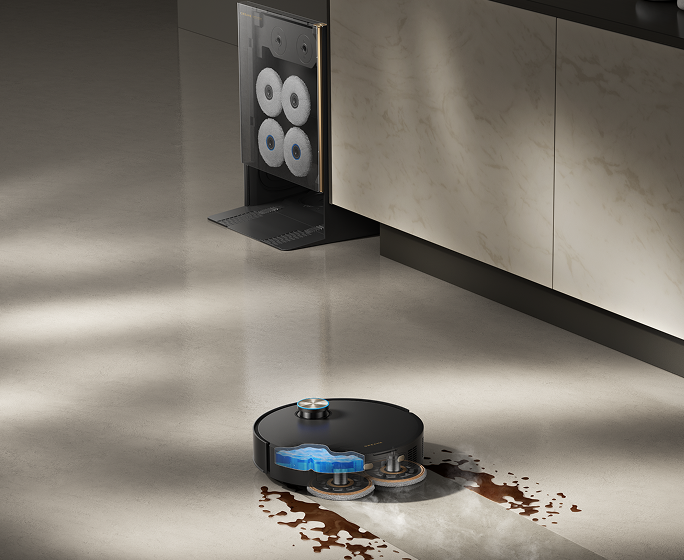 - Дополнительная информация автоматическая смена швабр, автоматическая очистка швабр с помощью горячей воды, сушка горячим воздухом, голосовое управление, автоматическая заправка чистящим средством для промывки швабр и мытья полов, поддержка протокола Matter, сохранение карт 4 этажей, регулировка мощности всасывания на ковре, регулировка расхода воды, интеллектуальная система объезда препятствий 3DAdapt, преодоление препятствий высотой до 8 см, выдвижная система DToF, система HyperStream с двумя щётками для предотвращения спутывания волос, три отсека для специальных жидких чистящих средств, RGB-камера с ИИ и 3D-сканирование на основе структурированного света, режим поиска домашних животных, фотосъёмка домашних животных и голосовое взаимодействие с ними, автоматическое создание видеоблога о домашних животных, самоочищающийся поддон для мытья швабр, возможность подключить к водопроводу (комплект для подключения приобретается отдельно)