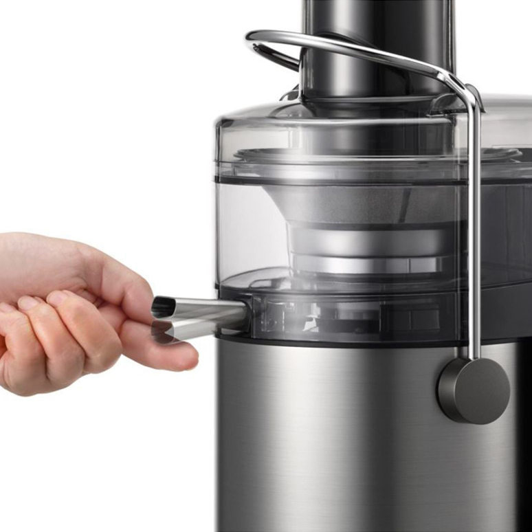 Ширина горловины составляет 75 мм, что позволяет использовать соковыжималку для обработки различных фруктов и овощей.