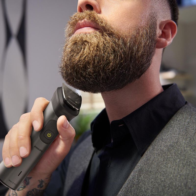 Этот мультитриммер помогает создавать различные образы, подравнивая волосы на лице, голове и теле.