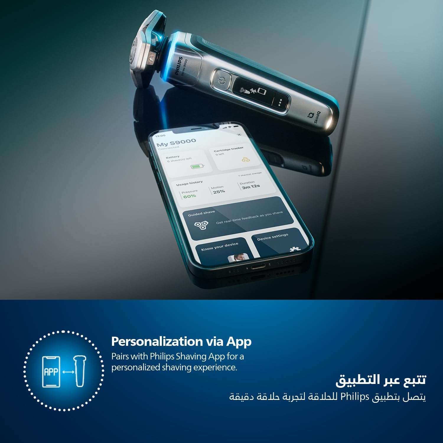Интеллектуальный датчик мощности анализирует густоту щетины 500 раз в секунду и автоматически регулирует мощность для эффективного и бережного бритья. Технология распознавания движений помогает улучшить технику с помощью приложения Philips GroomTribe — вы можете отслеживать прогресс и получать персональные рекомендации по бритью.